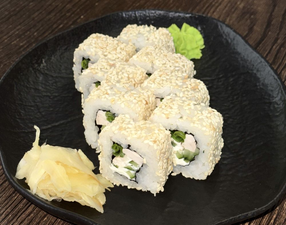 Ролл с курицей,огурцом,зеленым луком,в белом кунжуте
